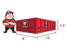 Dimensions: 10′ L x 8′ W x 2.5′ H